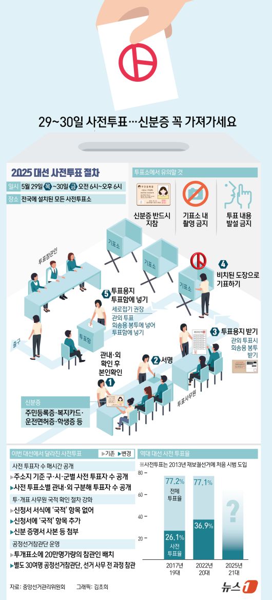 (서울=뉴스1) 임세원 기자 = 제21대 대통령 선거 사전투표가 29일부터 이틀간 실시된다. 유권자는 오전 6시부터 오후 6시까지 전국 3568개 사전투표소에서 투표할 수 있다.
