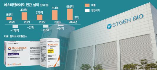 동아쏘시오홀딩스(000640)는 지난해 말 기준 에스티젠바이오의 지분 80.40%를 보유하고 있다. 2015년 일본 메이지세이카파마와 합작 설립하 이후 2021년에 동아쏘시오홀딩스가 메이지세이카파마 보유 지분을 전량 인수했다. 자가면역질환 치료제 ‘스텔라라’의 바이오시밀러 ‘이뮬도사’를 독점 생산하고 있으며, 빈혈치료제 '네스프'의 바이오시밀러 등도 만든다.
