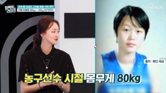 이날 이혜정은 '평생 늘씬하고 마른 몸매를 유지했냐'는 질문에 "농구선수 시절에는 80kg 이었다. 모델하면서 46kg까지 감량했다. 출산 후에는 10kg 이상 쪄서 현재는 약 60kg 유지 중이다"고 밝혔다.