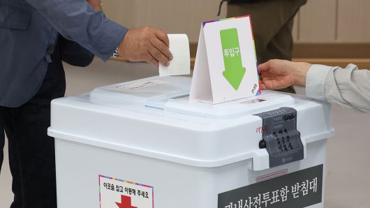 ▲ 제21대 대통령선거 사전투표 첫날인 29일 서울 성동구 송정동공공복합청사에 마련된 사전투표소에서 한 시민이 투표함에 투표용지를 넣고 있다.
