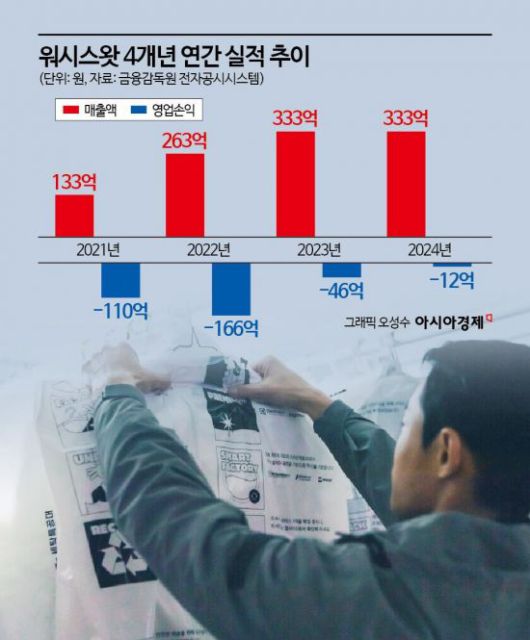 29일 금융감독원 전자공시에 따르면 워시스왓의 지난해 영업손실은 12억원으로 집계됐다. 전년(46억원)보다 74% 이상 줄어든 수치다. 당기순손실도 같은 기간 60억원에서 19억원으로 매우 감소했다. 지난해 매출은 333억원으로, 2년 연속 비슷한 수준을 유지했다. 매출 성장은 주춤했지만 적자 폭이 크게 줄면서, 올해 연간 흑자 전환 가능성에 무게가 실리고 있다.