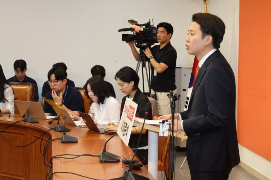 이준석 개혁신당 대통령 후보가 29일 오전 서울 여의도 국회에서 긴급 기자회견을 하고 있다. 2025.5.29 뉴스1 |