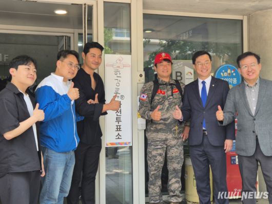 이날 오전 9시30분, 한강로동 주민센터 4층 대강당에 마련된 사전투표소에는 장경태 서울시당위원장, 강태웅 용산 지역위원장을 비롯한 당 지도부와 함께 사회적 이슈의 중심에 선 인물들이 참석했다. 해병대 채 상병 사망 사건과 관련한 해병대 예비역 이순형씨, R&D 예산 삭감 문제를 제기한 청년 김한결씨, 계엄령 문건 공개를 촉구해온 배우 이관훈씨, 용산 소상공인 김철규씨 등이 함께해 각자의 사연을 밝혔다.