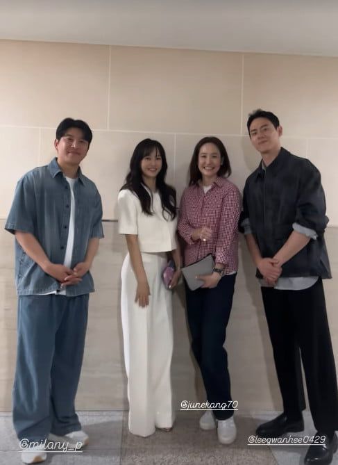 공유된 영상을 추신수의 아내 하원미가 SNS에 업로드한 영상. 해당 게시물 속에는 하원미와 배우 최민수의 아내 강주은, 농구선수 이관희가 나란히 서 있는 모습.