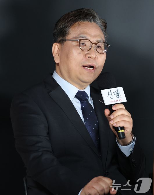 (서울=뉴스1) 권현진 기자 = 정천수 PD가 29일 서울 용산구 CGV용산아이파크몰에서 열린 영화 ‘신명’(감독 김남균) 제작보고회에 참석해 인사말을 하고 있다. '신명'은 신비로운 힘을 이용해 권력을 쥐려는 한 여인 윤지희(김규리 분)와 숨겨진 거대한 진실을 파헤치는 저널리스트 정현수(안내상 분)의 치열한 싸움 그리고 은밀한 음모, 주술과 정치의 결탁을 파헤치는 충격적인 스토리를 담아낸 작품이다. 2025.5.29/뉴스1