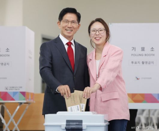 김문수 국민의힘 대선 후보가 29일 인천 계양구 계양1동 주민센터에서 딸 김동주 씨와 사전투표를 하고 있다. (공동취재) 2025.05.29. /사진=뉴시스 |