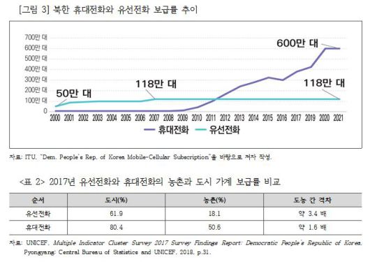 정 연구위원은 "당국의 통제가 지금보다는 조금이라도 완화된다면 북한에서도 미래에 휴대전화를 통한 취약계층의 빈곤 극복, 나아가 경제 발전의 여지가 커질 가능성을 시사한다"고 밝혔다. 이어 "북한 당국이 외부 세계와의 정보를 아무리 통제⋅차단해 별도의 세계를 구축하려고 해도 현실에서는 민간 영역에서의 사업 기회가 워낙 커 당국의 조치를 무력화시키는 것"이라고 부연했다.