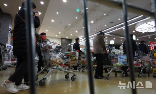 [서울=뉴시스] 황준선 기자 = 2일 서울 시내 한 대형마트에서 시민들이 장을 보고 있다. 2025.03.02. hwang@newsis.com |