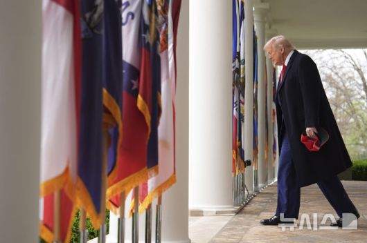 [워싱턴=AP/뉴시스] 미국 연방법원이 도널드 트럼프 미국 대통령의 상호 관세 부과 명령은 위법이라고 28일(현지 시간) 판결했다. 사진은 트럼프 대통령이 지난달 2일 백악관 경내 로즈가든에서 열린 상호 관세 발표 행사에 참석하는 모습. 2025.05.29. |