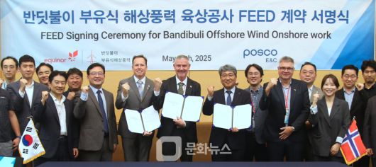 포스코이앤씨는 29일, 노르웨이 국영 에너지기업 에퀴노르(Equinor)와 '울산 반딧불이 해상풍력사업'의 기본설계(FEED) 계약을 체결했다고 밝혔다. 이번 계약은 지난해 11월 체결한 독점공급합의(PSA)를 기반으로 진행된 것으로, 향후 설계·조달·시공(EPC) 본계약을 위한 교두보로 평가받는다.
