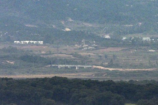 14일 경기도 파주시 접경지역에서 바라본 서부전선 비무장지대(DMZ) 북측 지역의 경의선 도로 위 구조물 인근에 흙더미가 쌓여 있다. 〈사진=연합뉴스〉 |