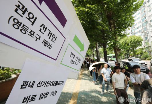 [서울=뉴스핌] 이형석 기자 = 제21대 대통령 선거 사전투표가 시작된 29일 오후 서울 여의도 투표소에 시민들이 투표를 위해 줄을 서 있다. 2025.05.29 leehs@newspim.com |