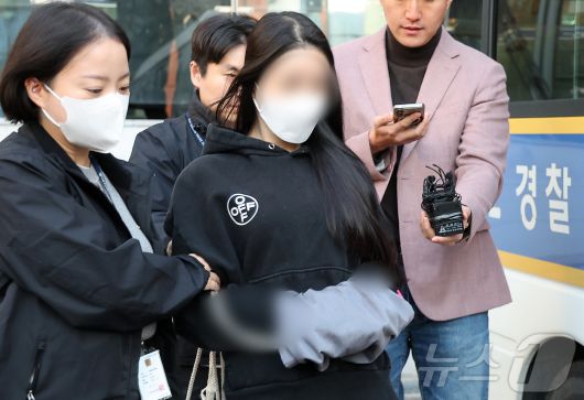 서울 강남 한복판에서 8중 추돌 사고를 일으킨 무면허 운전자 20대 여성 A 씨가 7일 오전 서울 강남경찰서에서 나와 검찰로 구속 송치되고 있다. A 씨는 지난 2일 오후 1시 42분쯤 강남구 역삼동 국기원입구 사거리에서 강남역 12번 출구로 향하는 테헤란로에서 차량 7대를 들이받은 후 역주행해 오토바이 1대와 부딪혀 8중 추돌 사고를 일으켰다. 2024.11.7/뉴스1 ⓒ News1 김진환 기자 |