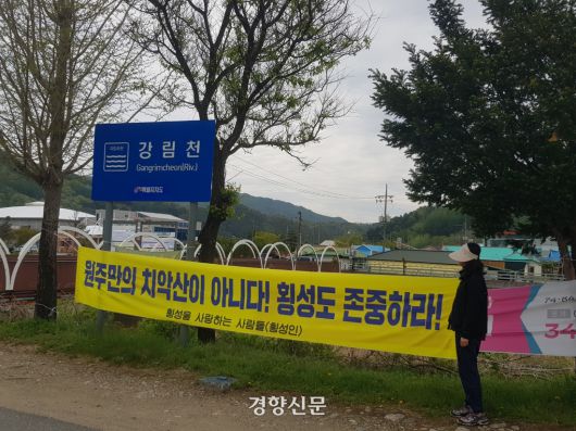 지난 25일 오전 강원 횡성군 강림면 행정복지센터 앞. 이곳에서 만난 한 60대 주민은 강림천 변에 내걸린 현수막을 가리키며 흥분을 감추지 못했다.