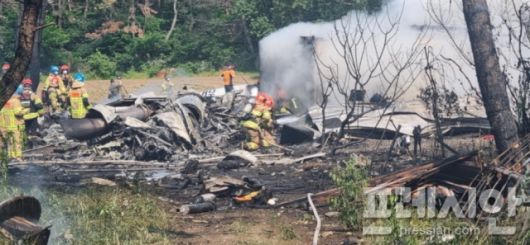 사고기는 이날 오후 1시 43분께 훈련 목적으로 포항기지를 이륙 후 7분 만인 1시 50분께 원인 불명의 이유로 기지 인근 야산에 추락한 것으로 파악됐다.