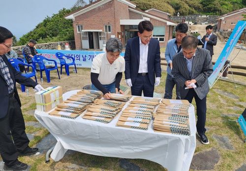 (목포=연합뉴스) 조근영 기자 = 목포지방해양수산청이 20년 전 전남 신안군 흑산면 가거도 등대 앞 부지에 묻어놓은 타임캡슐 개봉행사를 했다고 29일 밝혔다.