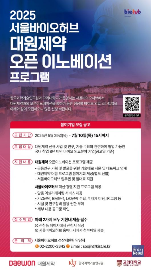 한편, 서울바이오허브는 서울특별시가 조성하고 한국과학기술원 및 고려대학교가 운영하는 바이오·의료 창업 혁신 플랫폼이다. 프로그램 지원에 관한 자세한 내용은 서울바이오허브 공식 홈페이지에서 확인할 수 있다.