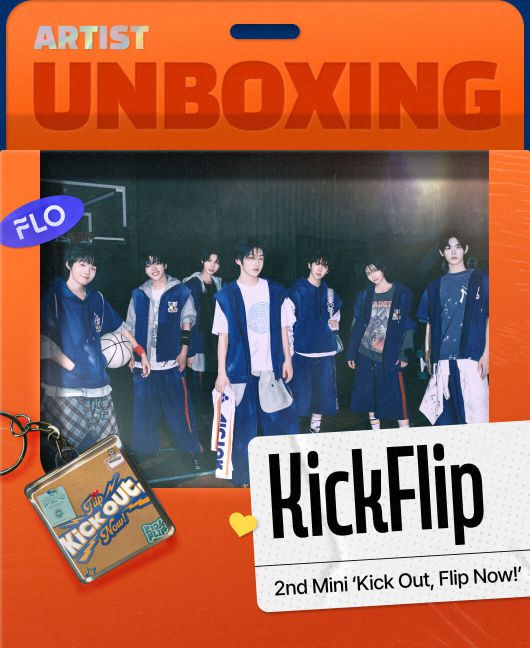 킥플립은 이번 플로 '아티스트 언박싱'에서 유쾌하면서도 자유로운 매력을 담아 지난 26일 새롭게 발매한 미니 2집 '킥 아웃, 플립 나우!'(Kick Out, Flip Now!) 전곡을 직접 소개한다. 이번 앨범은 '정형화된 틀은 걷어차고 판도를 뒤집겠다'는 당찬 포부를 킥플립만의 폭발적인 청량 에너지로 표현해 뜨거운 반응을 얻고 있다.