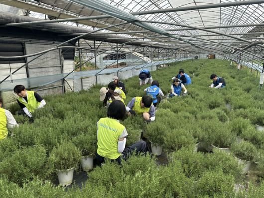 이번 일손돕기 활동에는 정현범 서울본부장, 서울본부 6급채용 신규직원 및 서울본부직원, 대학생봉사단 N돌핀 13기 등 60명이 참여해 허브농가 제초 및 출하작업, 환경정비 활동을 하며 구슬땀을 흘렸다.
