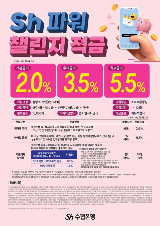 ■ Sh수협은행, 최고 연 5.5% 금리 'Sh파워챌린지적금' 출시