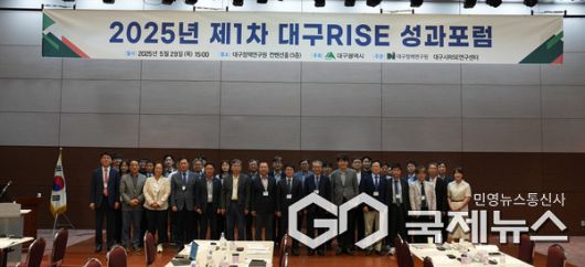 (대구=국제뉴스) 백운용 기자 = 정재석 대구시 대학정책국장은 "5월 29일 대구정책연구원에서 2025년 제1차 '대구 라이즈(RISE) 성과포럼'을 개최했으며 대구시, 대학, 지역혁신기관 및 산업체 관계자 등 100여 명이 참석했다"고 말했다.