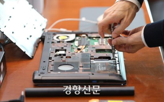 서울 서초동 대검찰청 국가디지털포렌식센터(NDFC)에서 한 수사관이 디지털포렌식 실습으로 가상의 업체를 압수수색을 하는 모습을 시연하고 있다. 경향신문 자료사진 |