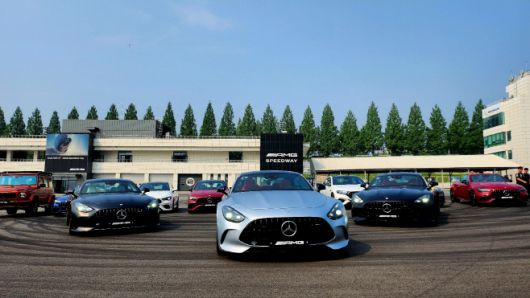 용인/아시아투데이 강태윤 기자·이유경 인턴 = '메르세데스-AMG GT 55 4 매틱+'를 선두로 고성능차 10대가 심장을 쿵쿵 때리는 강렬한 비트의 음악과 함께 등장했다. 빠른 속도로 넓은 반경의 회전을 보여주다 순식간에 직선으로 교차해 지나갔다. 잠시 후 반경을 좁히며 화이트·레드·그린 등 형형색색의 차량이 위풍당당하게 도열하자 현장에서 박수가 쏟아졌다.