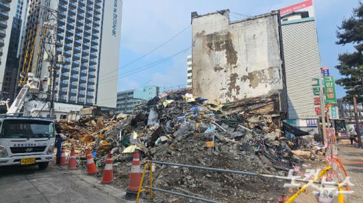 서울 중구 세운대림상가 인근 노후 건물에서 발생한 화재가 12시간여 만에 완전히 꺼졌다. 나채영 기자 |