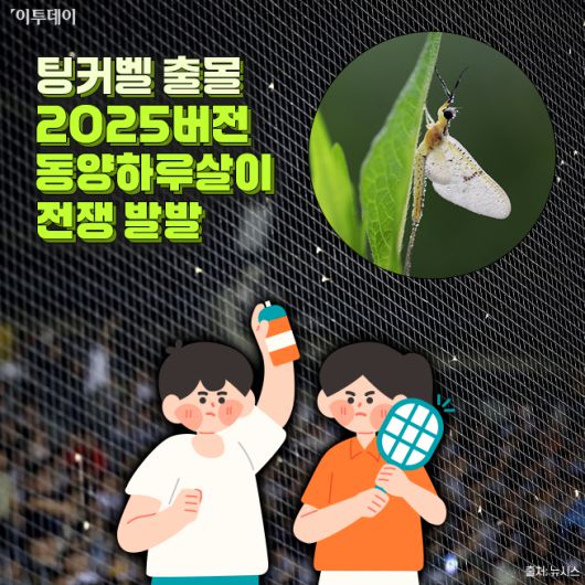 날개를 펼치면 5㎝에 달하는 크기와 빛을 반사하는 밝은 몸 색깔 때문에 ‘팅커벨’이란 별명이 붙은 동양하루살이. 그러나 이 로맨틱한 별칭과 달리 현실은 끈적하고 불쾌한 경험으로 가득 차 있습니다. 5월 중순만 되면 ‘어디든 간다’는 각오로 도심을 휘젓고 다니기 때문인데요. 벌레를 피해 뛰는 사람들, 간판불을 끄고 장사하는 상인들, 그리고 하늘을 보며 손사래를 치는 야구장 관람객들. 2025년의 여름도 어김없이 이 ‘팅커벨 대첩’이 시작됐습니다.
