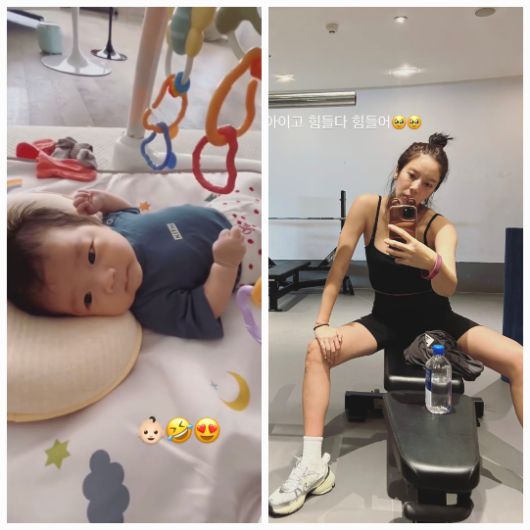 29일 손담비는 자신의 SNS에 “날이 좋아서 모두들 무탈한 하루 보내길. 아이고 힘들다 힘들어. 해이 신나?”라는 글과 함께 육아와 운동 일상을 담은 사진을 공개했다.