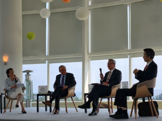 송민순(왼쪽 두번쨰부터)·김성환·윤병세 전 외교부 장관이 29일 제주국제컨벤션센터에서 열린 제주포럼에서 발언하고 있다. 신형철 기자 newiron@hani.co.kr |