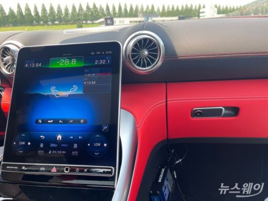 차량에 착석해 눈에 띄었던 것 중 하나는 11.9인치 터치스크린이었다. 중앙 앞쪽에 위치한 LCD 디스플레이로 에어컨 및 히터 조작과 온도 조절이 가능하고 간단한 주행 정보 등을 확인할 수 있다. 이 디스플레이는 터치로 조작할 수 있어 운전자의 편의성을 한층 높였다.