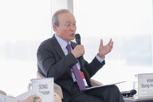 급변하는 국제 정세 속 미국과 중국에 대한 통찰에서는 “체력과 역량이 떨어지면서 파울 플레이에 기댈 지경이 된” 미국과 “비호감을 쌓은 미국 대비 상대적으로 파고들 여지가 생긴” 중국이 대비됐다. 한국으로서는 “가치체계나 숨쉬는 공기가 비슷한 미국이 잘 버텨줘야 바람직한데 미국이 모양상 밀리는 것 같아 우려스럽다”고 송 전 장관은 평가했다.