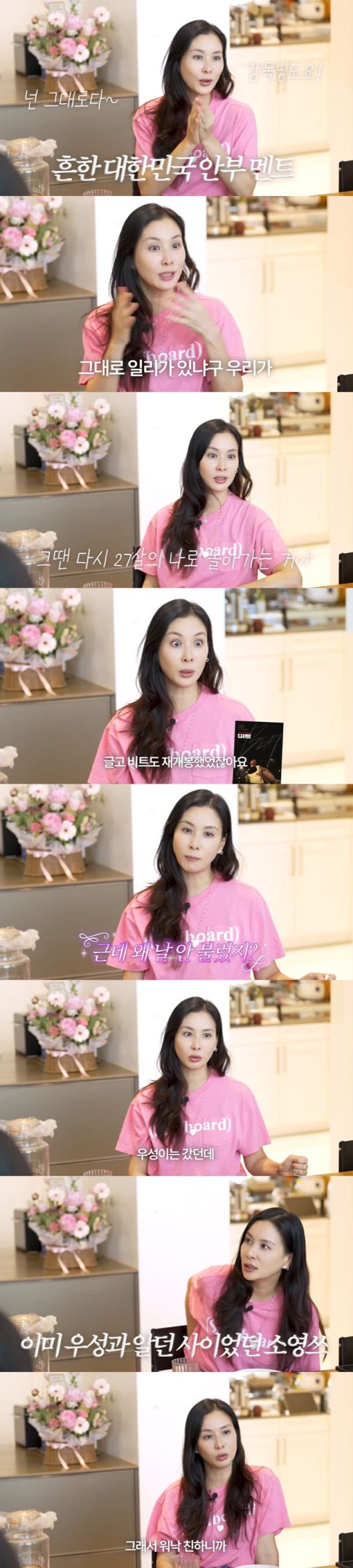 고소영은 "만났더니 막 서로 칭찬, 좋은 말, '넌 그대로다' '감독님도요' 이랬다. 그대로 일리가 있냐 우리가. 근데 그때랑 똑같다"며 김성수 감독과 만날 때는 '비트'를 찍던 27살로 돌아가는 느낌이라고 전했다.