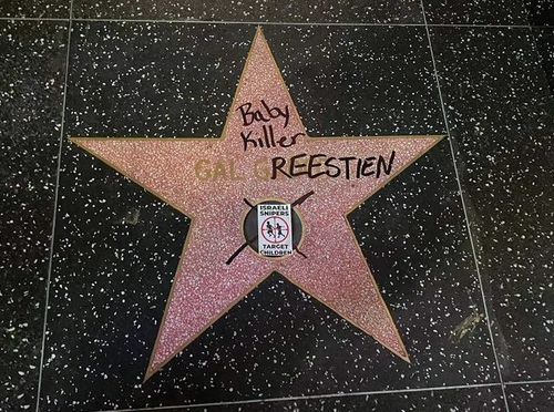 소셜미디어에는 오각별 명판에 새겨진 가도트의 이름 위에 영어로 '영아 살인자'(baby killer)라고 쓰인 사진이 확산했다.