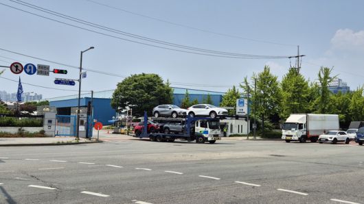 29일 오후 방문한 한국GM 부평공장에서 수출되는 차량이 트레일러에 실려 옮겨지고 있다. 부평 한창호 기자