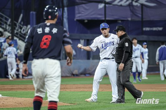 삼성 벤치는 불필요한 오해를 막고자 투수를 이승민으로 다시 교체했다.