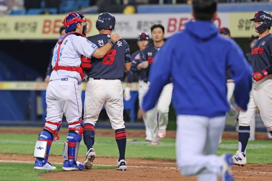 (엑스포츠뉴스 대구, 최원영 기자) 두 선수의 감정이 격해지며 벤치클리어링이 일어났다.
