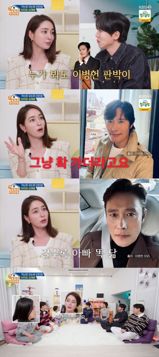 아들이 이민정과 이병헌 둘 중 누구를 더 닮았냐는 질문에는 "준후가 어렸을 때는 저랑 비슷했었다가 점점 더 아빠 쪽으로 가더라"라고 말했다.