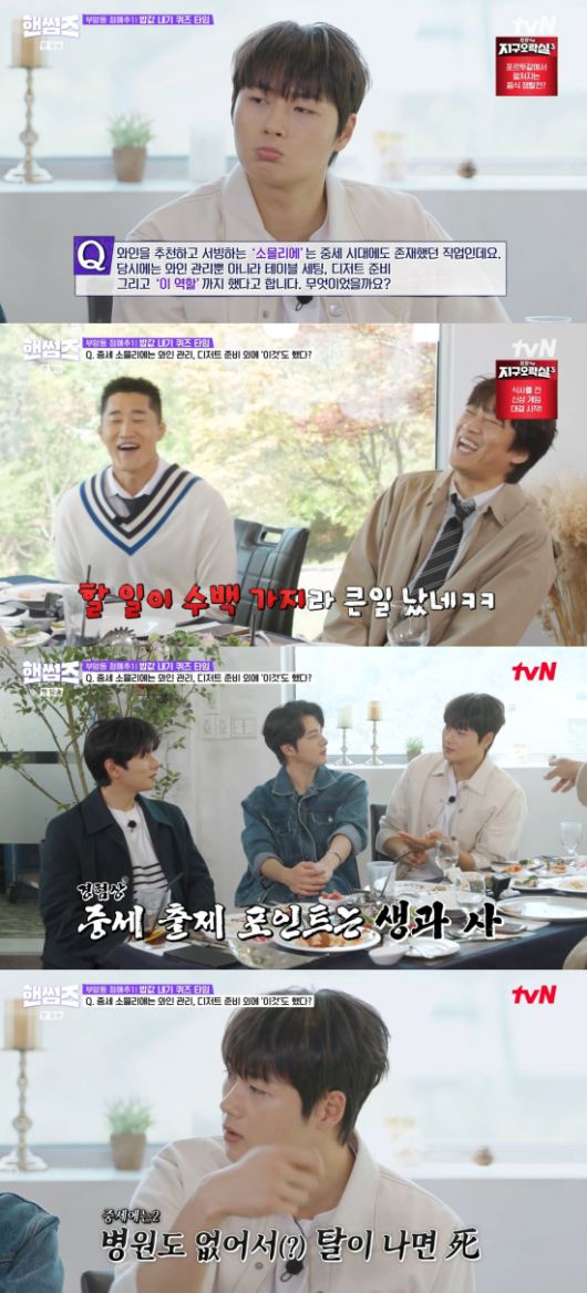 이이경은 "이거 어때"라며 음악 선곡을 지목했고, 김동현은 "소믈리에 전용 피아노 학원이 성행했다고 하더라"라며 덧붙였다.