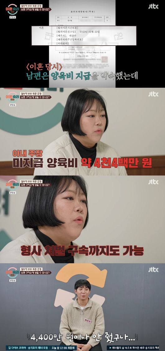 남편 역시 양육비 미지급이 계속 되면, 징역까지 갈 수 있다는 걸 알고 있었다. 특히 양육비 미지급이 4,400만원이라는 말에 놀란 남편은 “내가 그만큼 안 줬구나. 상상도 할 수 없을만큼 금액이 나와서 당황했다”라고 털어놨다.
