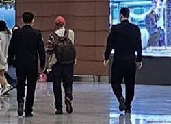 2025년 5월 6일 오전 10시 14분 중국 선양(瀋陽) 공항에서 서길수(가운데 빨간 모자 쓴 이) 교수가 중국 당국으로부터 입국을 불허 당한 뒤 보안 담당 직원 두 명에게 이끌려 출국장으로 압송 당하고 있다. /서길수 교수 제공 |
