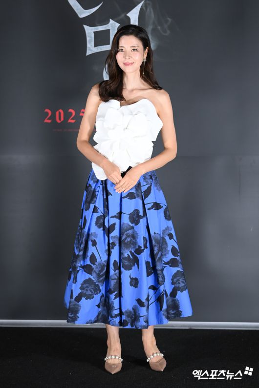 29일 오전 서울 용산구 CGV용산에서 영화 '신명'(감독 김남균)의 제작보고회가 열렸다. 이날 김규리는 입체적인 플라워 장식이 인상적인 튜브톱 스타일의 화이트 상의로 '영부인 룩'을 완성했다.