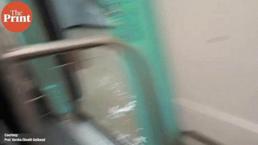 소셜미디어에 공유된 영상에는 지하철 안으로 물이 쏟아지고 천장에서 물이 떨어지는 모습에 승객들이 당황하는 장면이 담겼다.