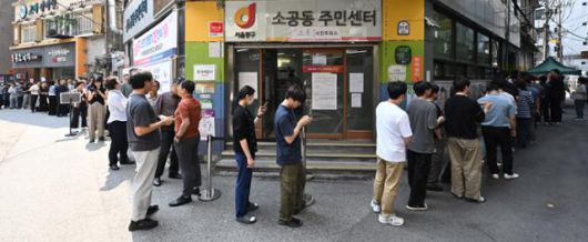 21대 대통령선거 사전투표 첫날인 29일 서울 중구 소공동 주민센터에 마련된 사전투표소에 유권자들이 투표를 하기 위해 길게 줄을 서고 있다. 이날 투표율은 2014년 6•4지방선거에서 사전투표제도가 도입된 이래 역대 최대치인 19.58%를 기록했다. 박시몬 기자 simon@hankookilbo.com