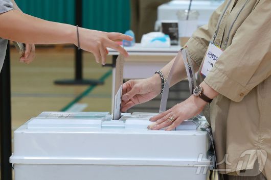 제21대 대통령 선거 사전 투표 첫날인 29일 오후 서울 강남구 수서동 강남스포츠문화센터에 마련된 사전투표소에서 유권자가 소중한 한 표를 행사하고 있다. 2025.5.29/뉴스1 ⓒ News1 김진환 기자 |