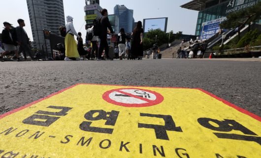 '세계 금연의 날'을 이틀 앞둔 29일 서울역 앞에 금연구역 안내표시가 붙어 있다. 뉴스1 |