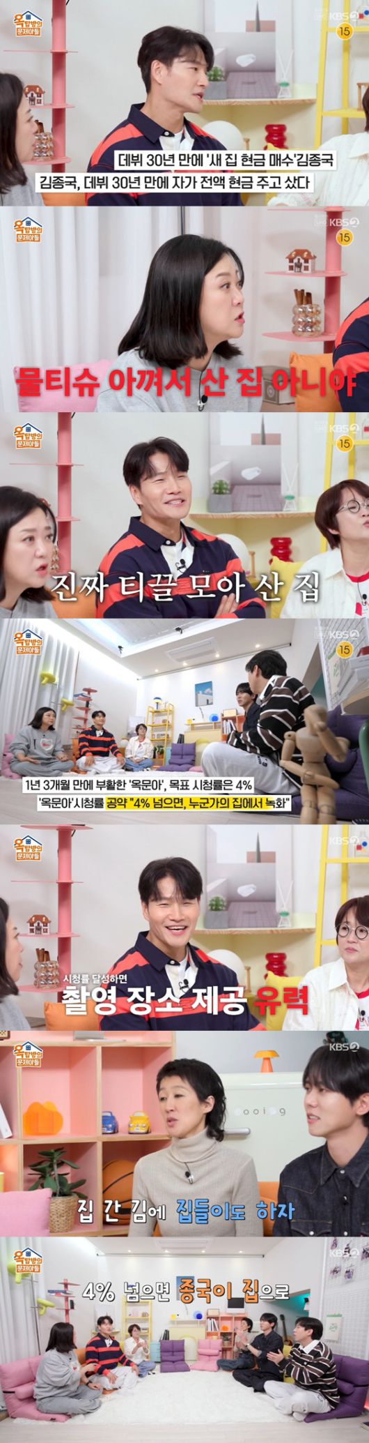 29일 방송된 KBS 2TV 예능 프로그램 '옥탑방의 문제아들 시즌2'에서는 최근 62억 고급빌라를 산 김종국을 축하했다.