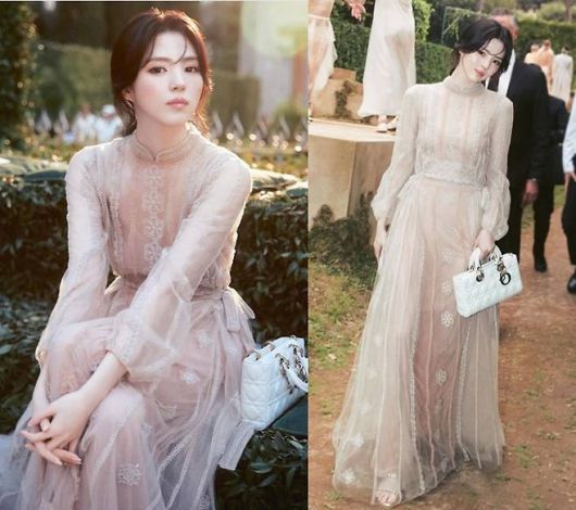 드레스는 몸을 감싸듯 흐르는 실루엣과 러플 디테일, 바닥까지 이어지는 길이감으로 그녀 특유의 우아하고 청초한 무드를 완벽히 살렸다.사진=한소희 SNS |