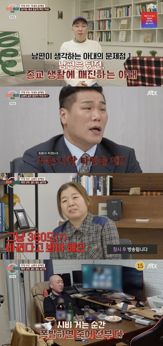 이날 아내는 남편의 문제점으로 일방적인 관계 요구, 과도한 집착, 술 등을 언급했다. 특히 남편은 하루종일 술로 시작해 술로 끝나는 일상을 공개해 모두를 놀라게 했다.